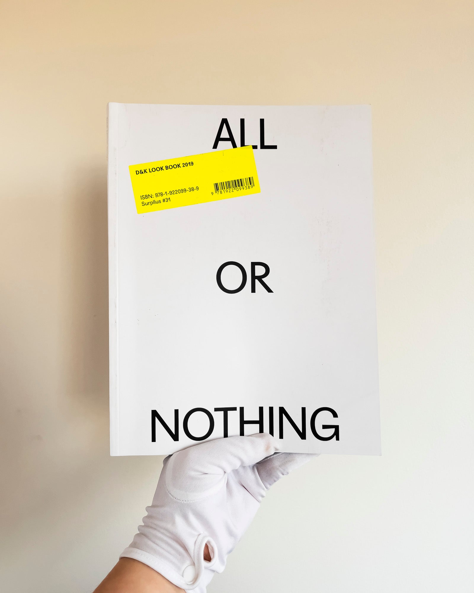 D&K Look Book 2019 expands what the traditional collection lookbook can be through a comprehensive and book-ish overview of their performance/installation/project D&K All or Nothing. This work features extensive photographs of garments from the collection, accompanied by lyrical captions for each garment. Texts from contributors such as Femke de Vries, Clemens Thornquist along with founders Ricarda and Nella provide context and reflect on the nature of fashion runways, walks, models and performance. This publication was co-launched with Mode and Mode 7, “D&K LOOKBOOK 2019” by Laura Gardner and Karina Soraya, an anthology of texts and key D&K projects from 2012 to present.